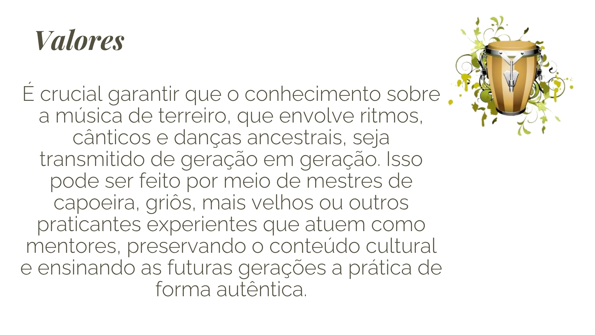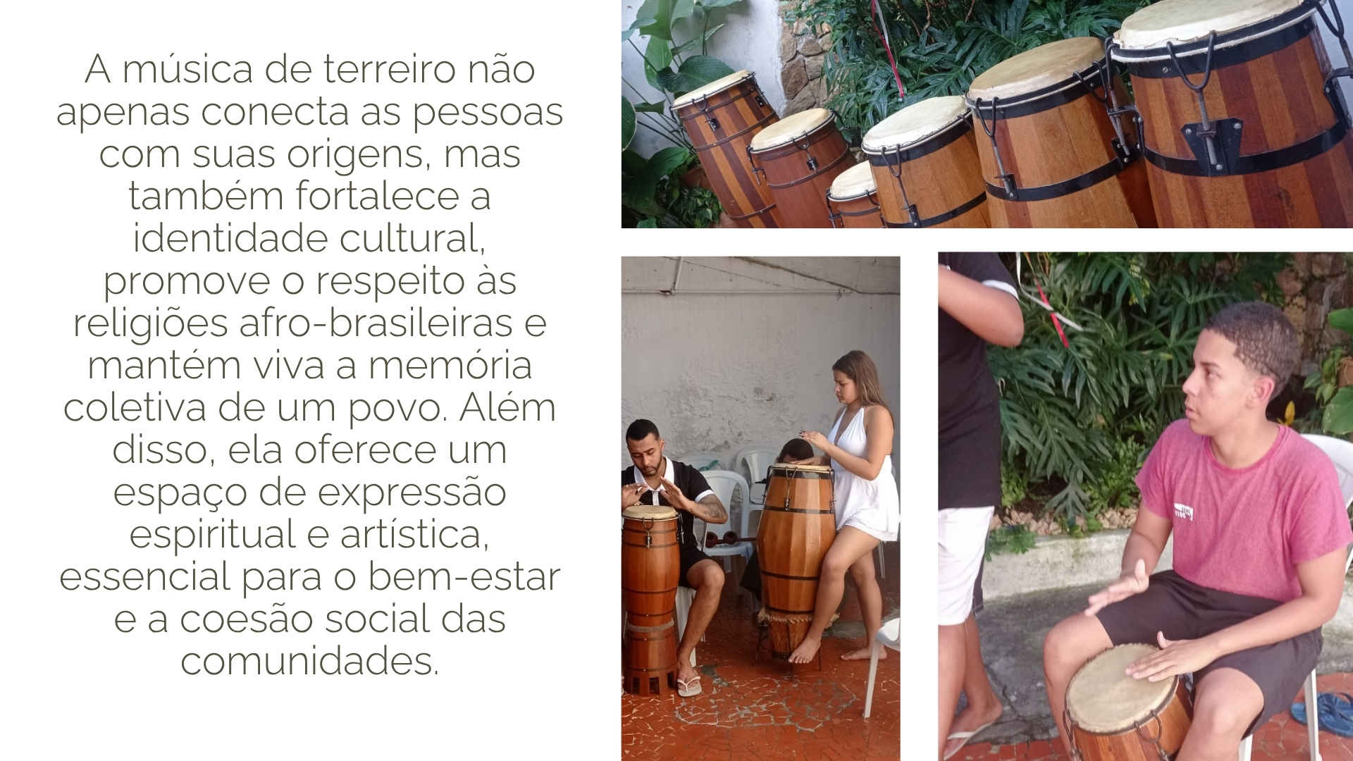 A música de terreiro não apenas conecta as pessoas com suas origens, mas também fortalece a identidade cultural, promove o respeito às religiões afro-brasileiras e mantém viva a memória coletiva de um povo. Além disso, ela oferece um espaço de expressão espiritual e artística, essencial para o bem-estar e a coesão social das comunidades.