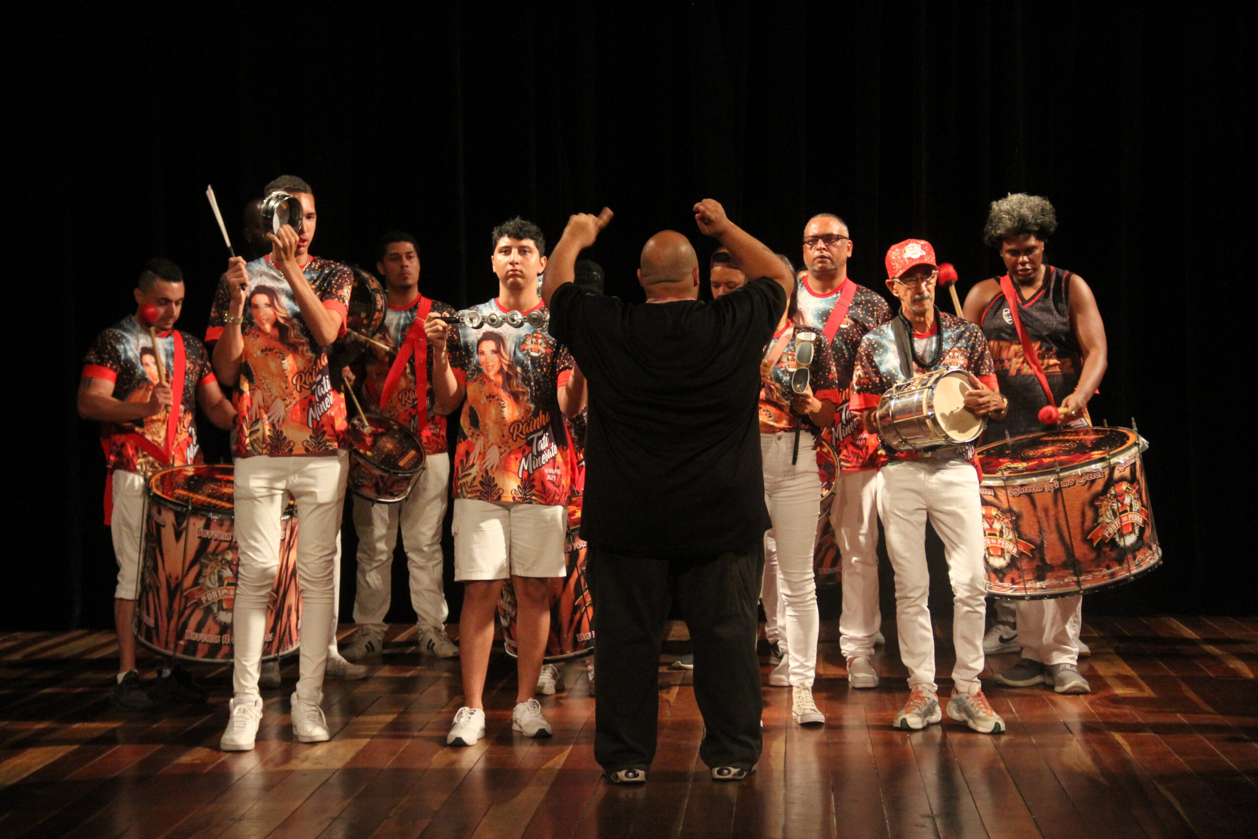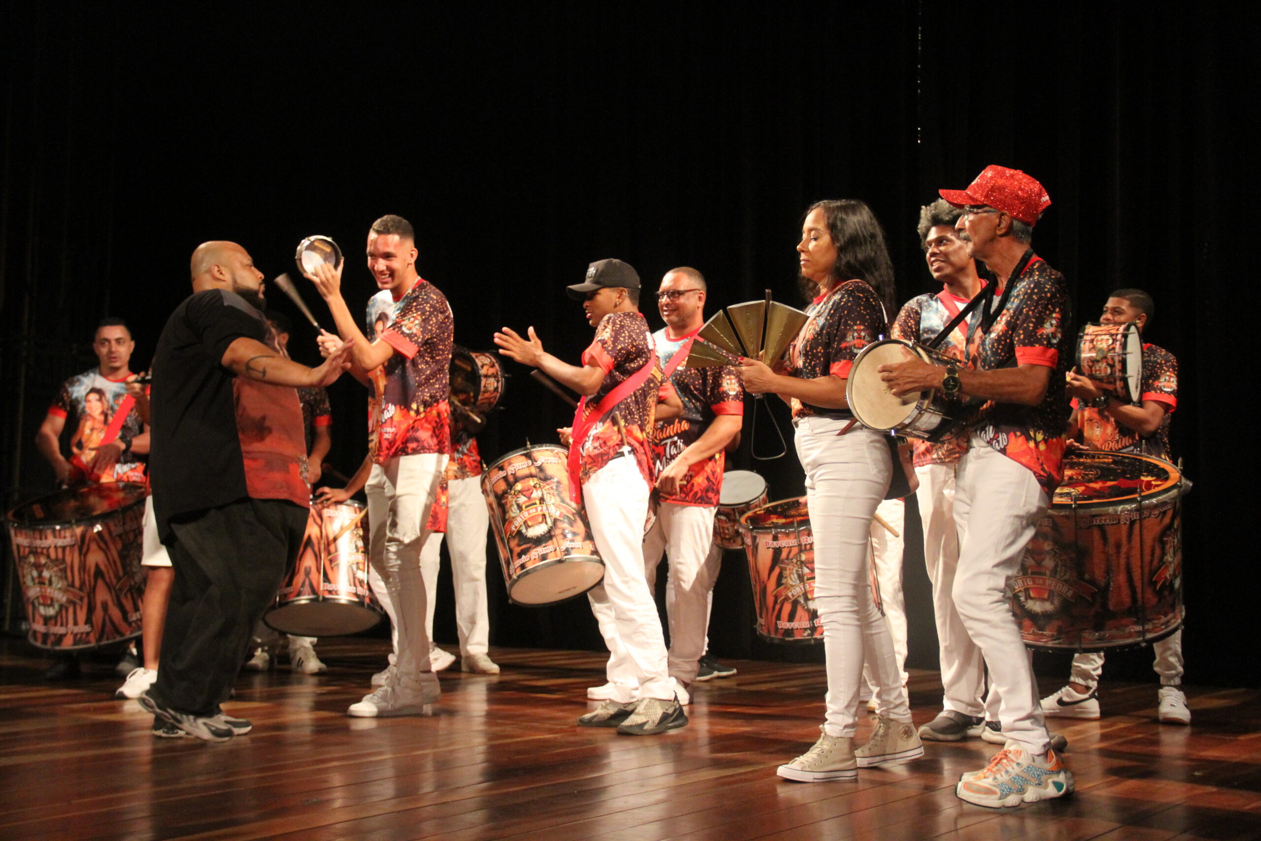 Numa noite repleta de emoção e felicidade, a 1a Turma da Escola de Tambores Valdir Urubatam, se apresentou como formatura oficial no Teatro Municipal de São Gonçalo. Foi emocionante ver os rostinhos dos meninos, todos cheios de orgulho no Teatro, informou Pai Fernando, todo orgulhoso dos seus alunos.